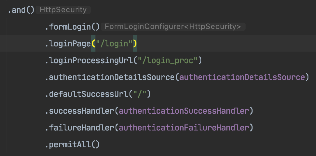 그러면 정사적으로 HttpSecurity타입의 객체가 반환되는걸 확인할수 있다.