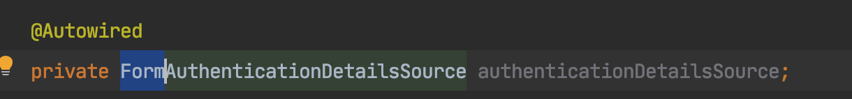 일반적으로 동일한 인터페이스 타입으로 동일한 이름을 가진 빈을 두개 이상 선언하지 않으면 오류가 발생하지 않기 때문에 AuthenticationDetailsSource로 선언해도 상관없고 실제로 확인해보면 FormAuthenticationDetailsSource타입의 객체로 DI되고 있다.