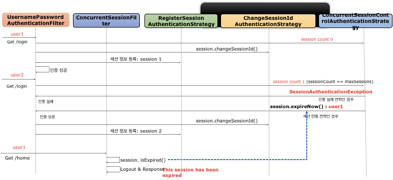 SessionManagementFilter, ConcurrentSessionFilter 두개가 동시적 세션 제어를 처리하게 된다